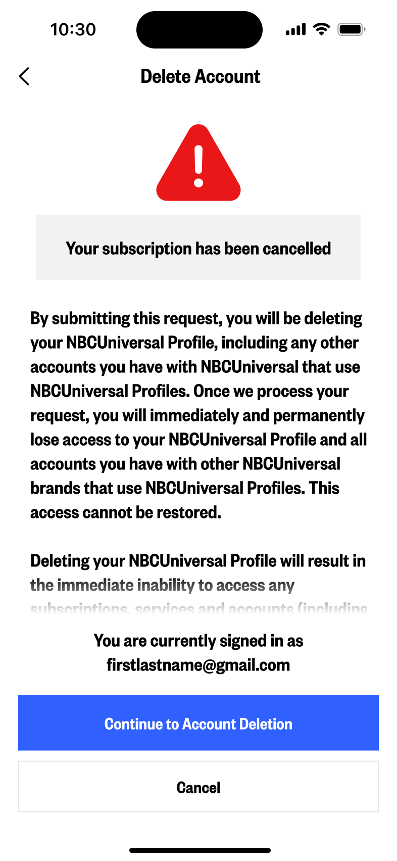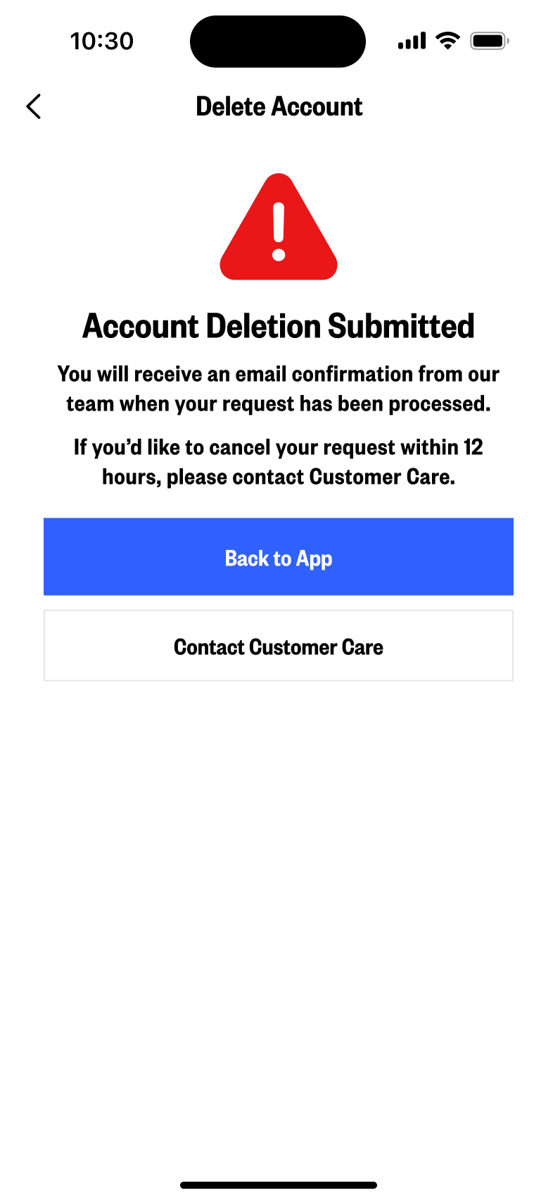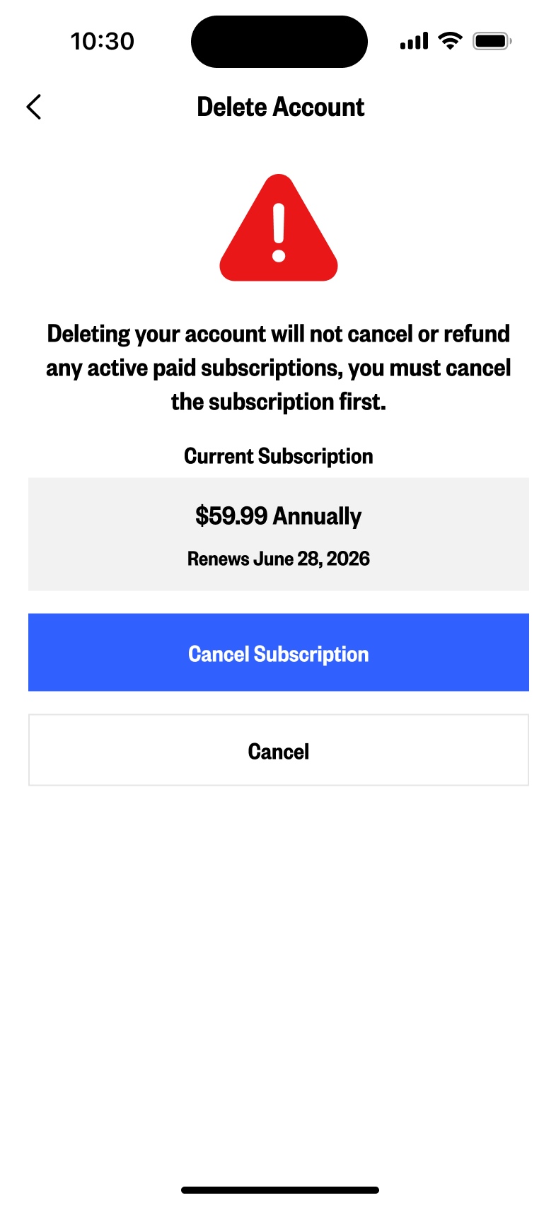 Due to app store requirements, we also needed to include a way for users to not only cancel their subscription, but delete their accounts as well.