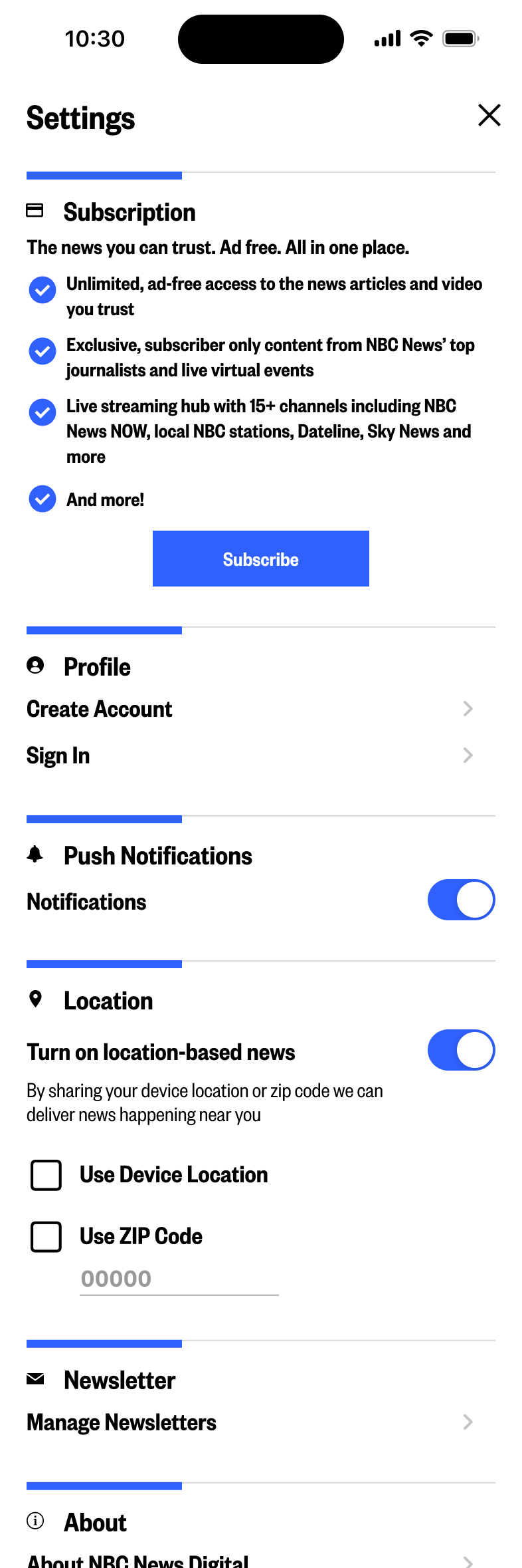 If the user has granted location access, the closest available NBC News channel will be surfaced to them first.